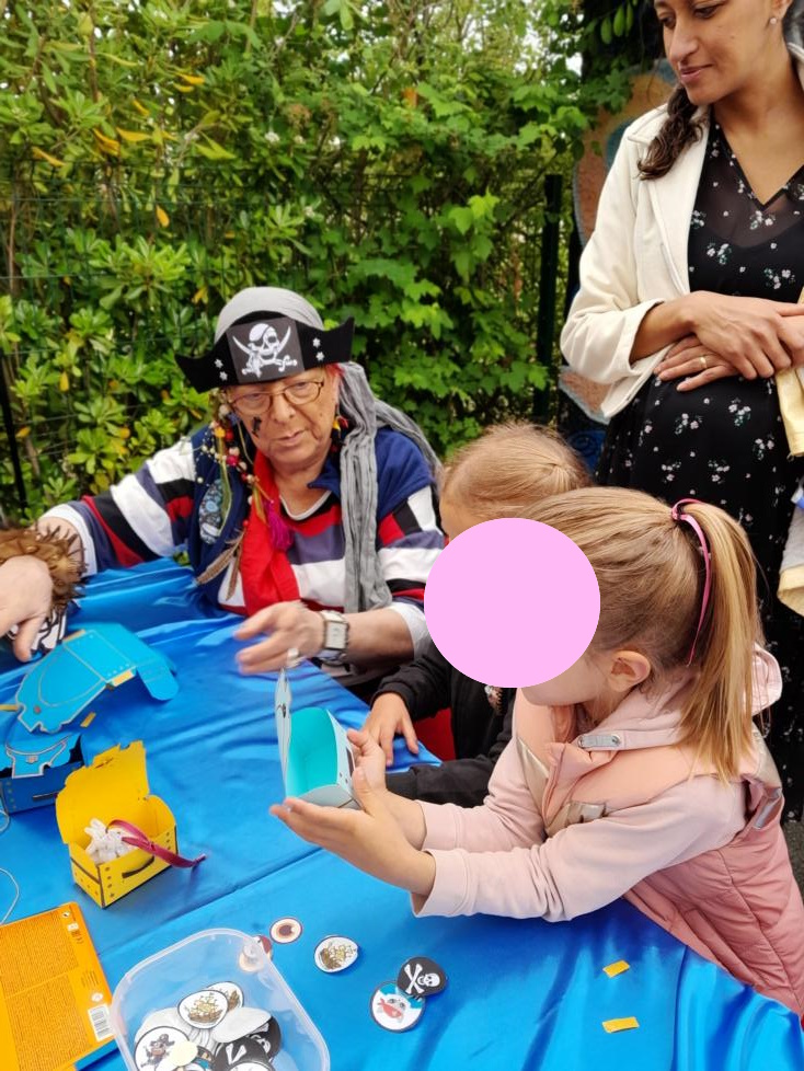 Annie a préparé des coffres, à plier et à décorer avant d'y placer des trésors - Le jeu du pirate gourmand préparé par Jean-Luc attend les joueurs...