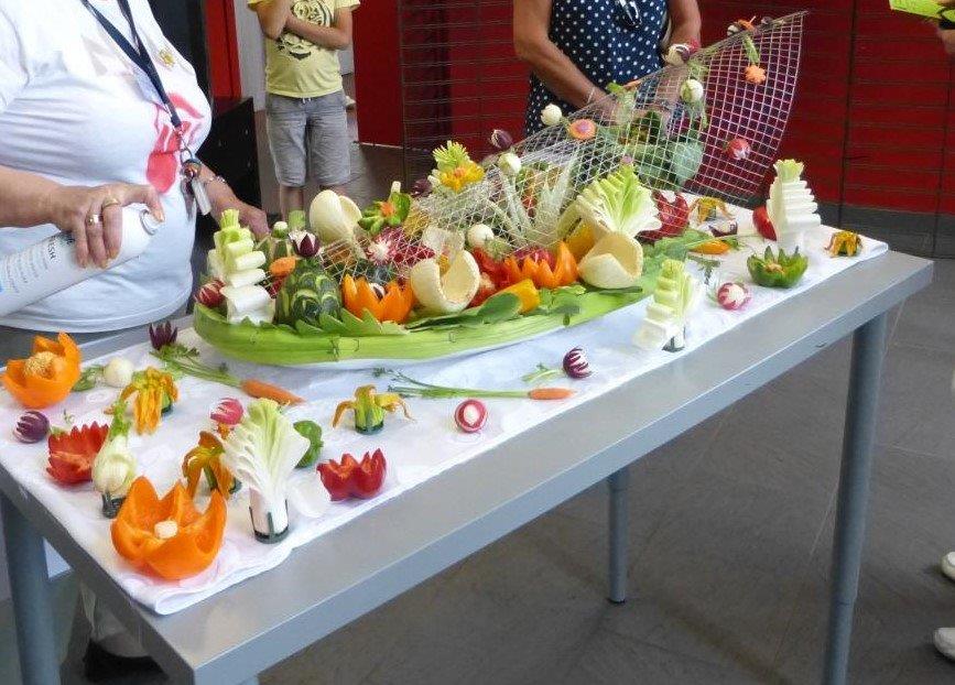 Jacqueline nous a préparées à réaliser une oeuvre collective sur la base de légumes découpés... et notre oeuvre été choisie par le public pour le 1er prix !
